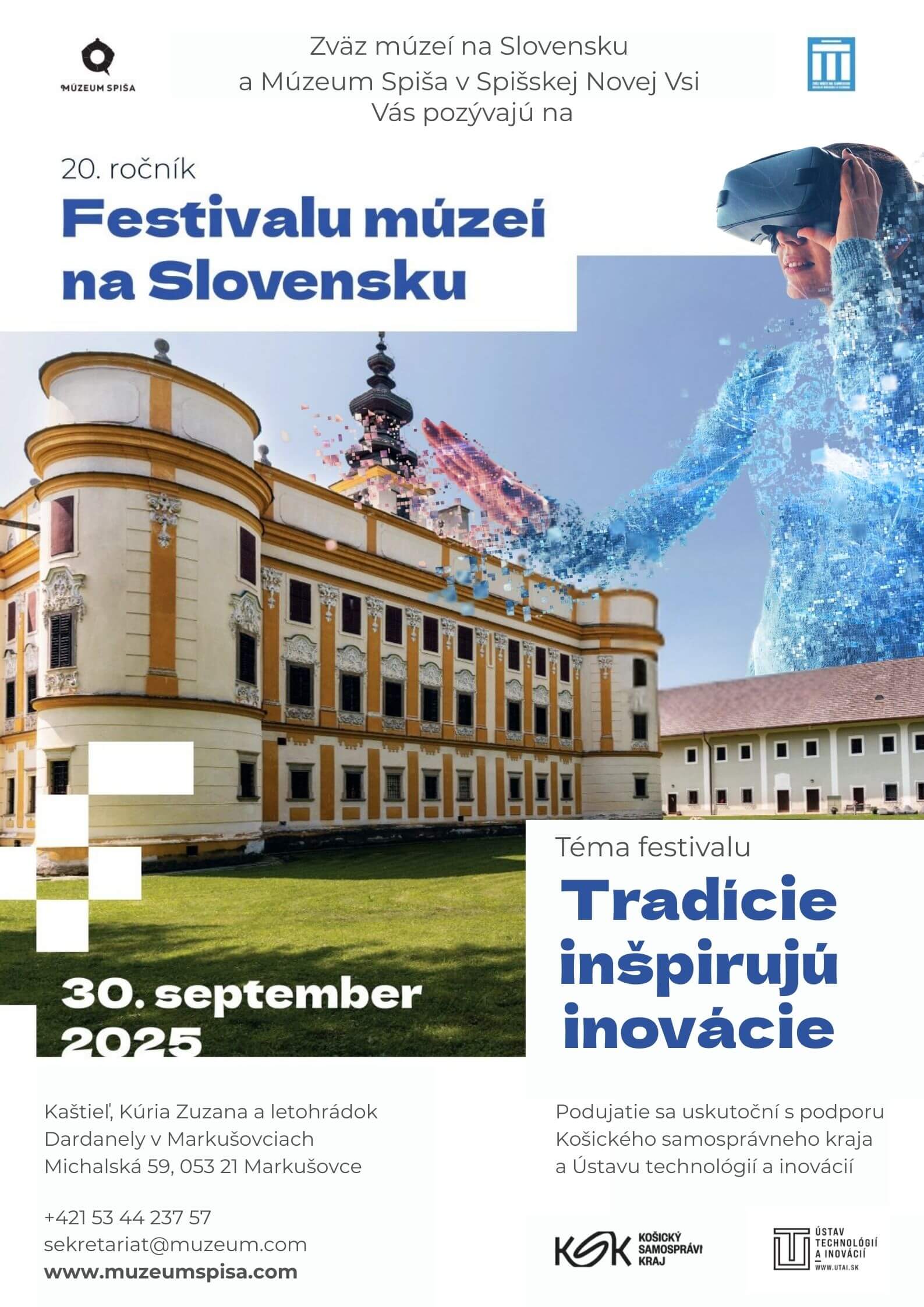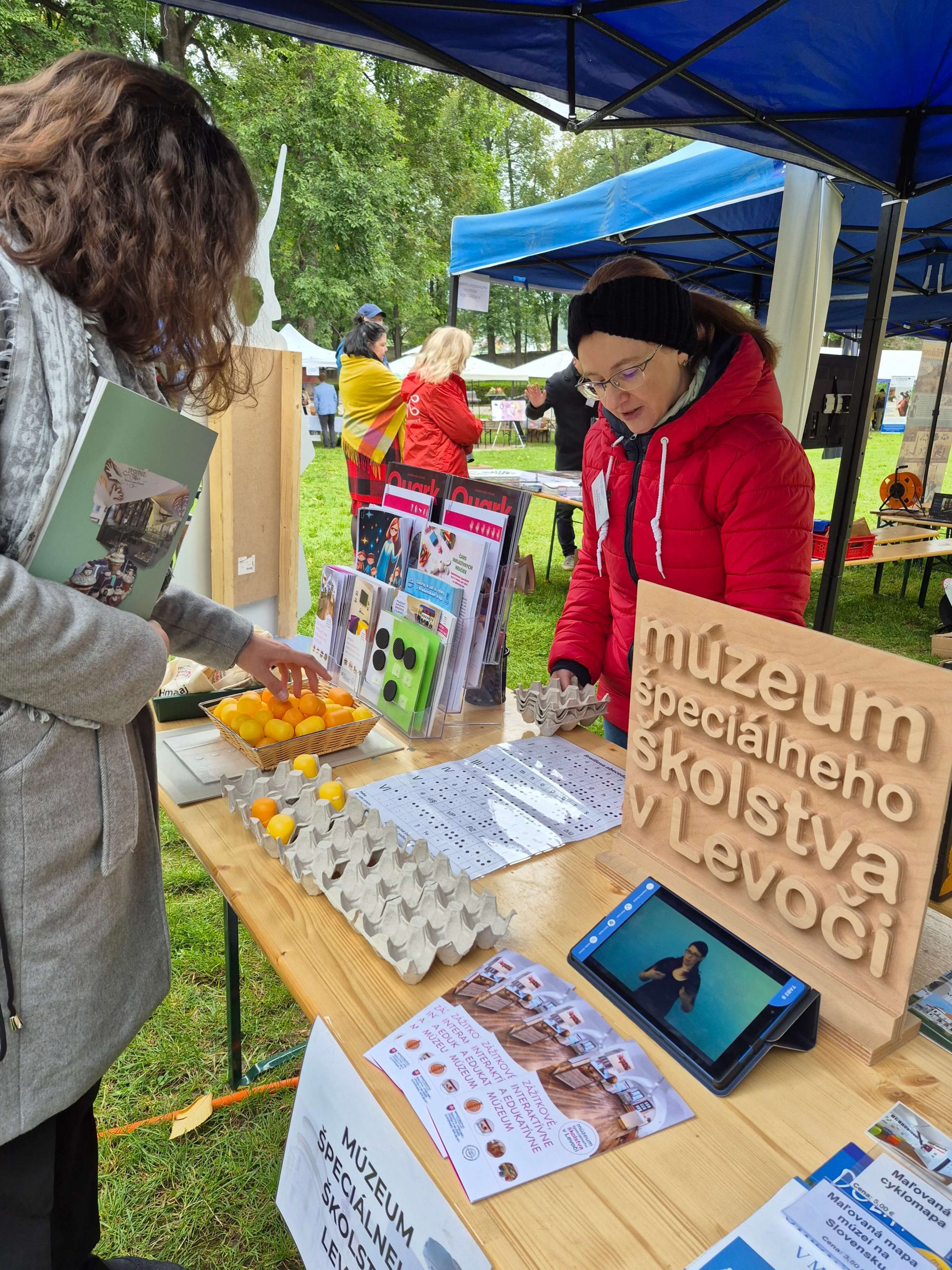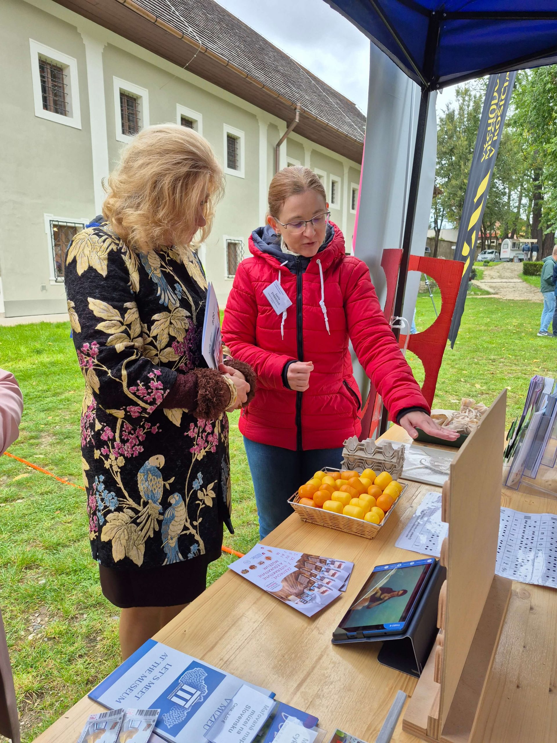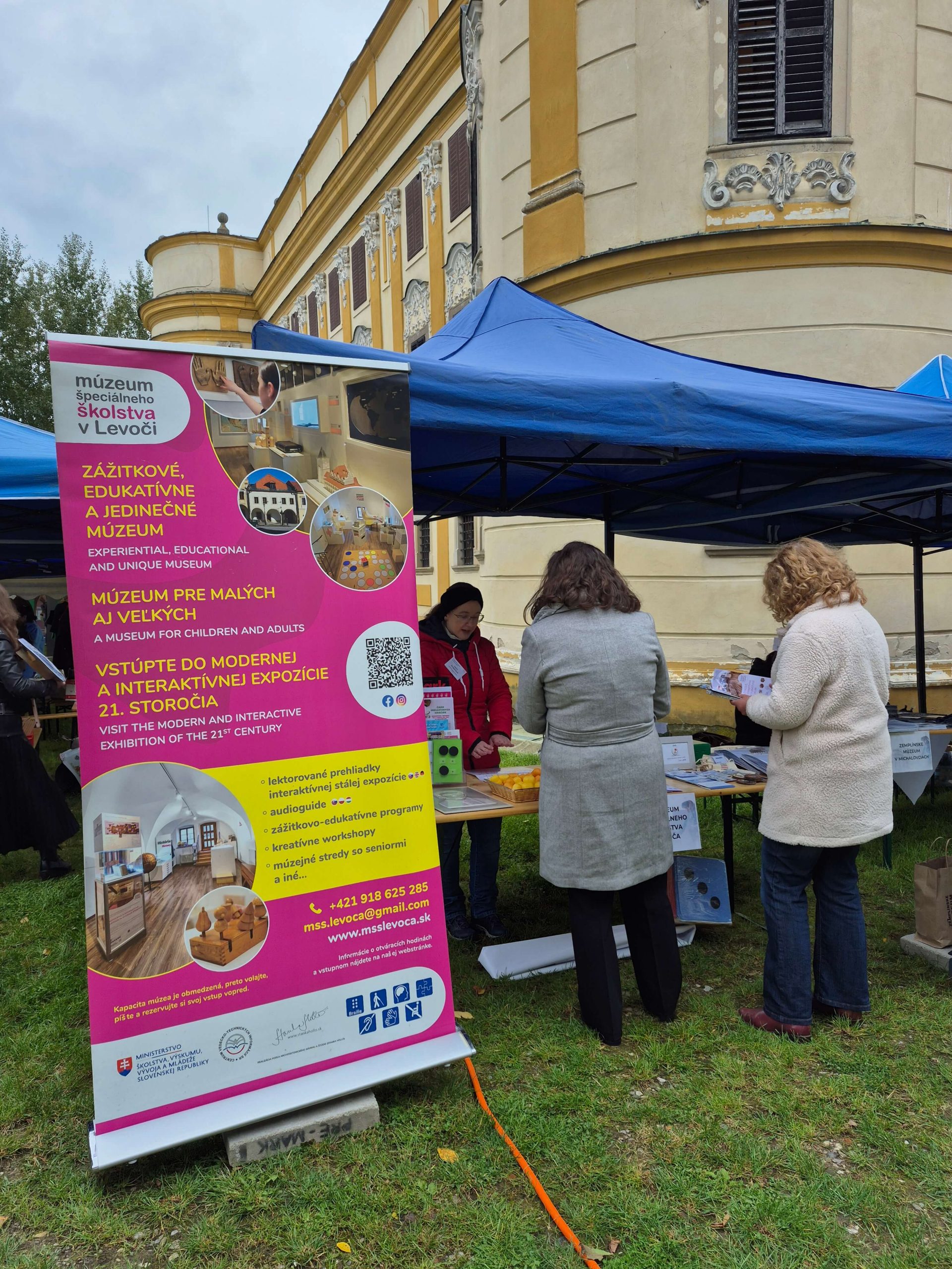 Posledný septembrový deň roku 2025 sa konal jubilejný 20. ročník Festivalu múzeí na Slovensku. Pri príprave festivalu tentokrát podali organizátorovi, Zväzu múzeí na Slovensku, pomocnú ruku kolegovia z Múzea Spiša v Spišskej Novej Vsi. Pre potreby konania festivalu veľkoryso poskytli na celý deň priestory nádherného historického areálu Markušovského kaštieľa s Letohrádkom Dardanely. Pozvanie organizátorov prijalo tento rok viac ako 150 múzejníkov z 30 slovenských múzeí a ďalší hostia zo spolupracujúcich organizácií a združení. Po oficiálnom privítaní a otvorení festivalu sme prítomným kolegom z členských múzeí prezentovali poslanie a zameranie nášho múzea. Predstavili sme im nielen našu stálu interaktívnu expozíciu, ale aj na ňu nadväzujúce zážitkovo-edukatívne programy a workshopy, ktoré pravidelne realizujeme. Nezabudli sme zdôrazniť prístupnosť nášho múzea aj návštevníkom s telesným a mentálnym postihnutím, prezentovali sme nášho jedinečného sprievodcu v slovenskom posunkovom jazyku, vďaka ktorému sme prístupní aj návštevníkom so sluchovým postihnutím. Ako je u nás zvykom, návšteva múzea sa spája s interakciou a zážitkom, preto sme si pre našich kolegov múzejníkov pripravili malú ukážku našich aktivít. Keďže si tento rok pripomíname okrúhle 200. výročie vzniku Braillovej abecedy, vybrali sme aktivity približujúce problematiku nevidiacich. Rozličné predmety ukryté vo vrecúškach s nápisom „Hmataj a uhádni“ preverili šikovnosť ich prstov a upriamili pozornosť na dôležitosť hmatového vnímania. S úspechom sa stretla aj možnosť zapísať si svoje krstné meno alebo krátke slovíčko v Braillovej abecede.