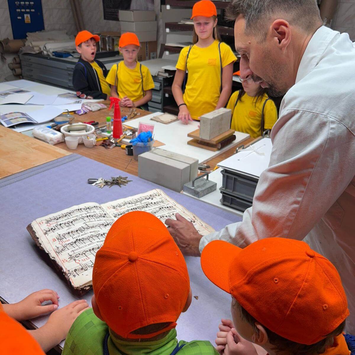 Navštívili sme aj Spišský archív v Levoči, kde sa malí múzejníci dozvedeli, akým procesom prechádzajú staré knihy a listiny, aby opäť dostali nový šat a zachovali sa budúcim generáciám.