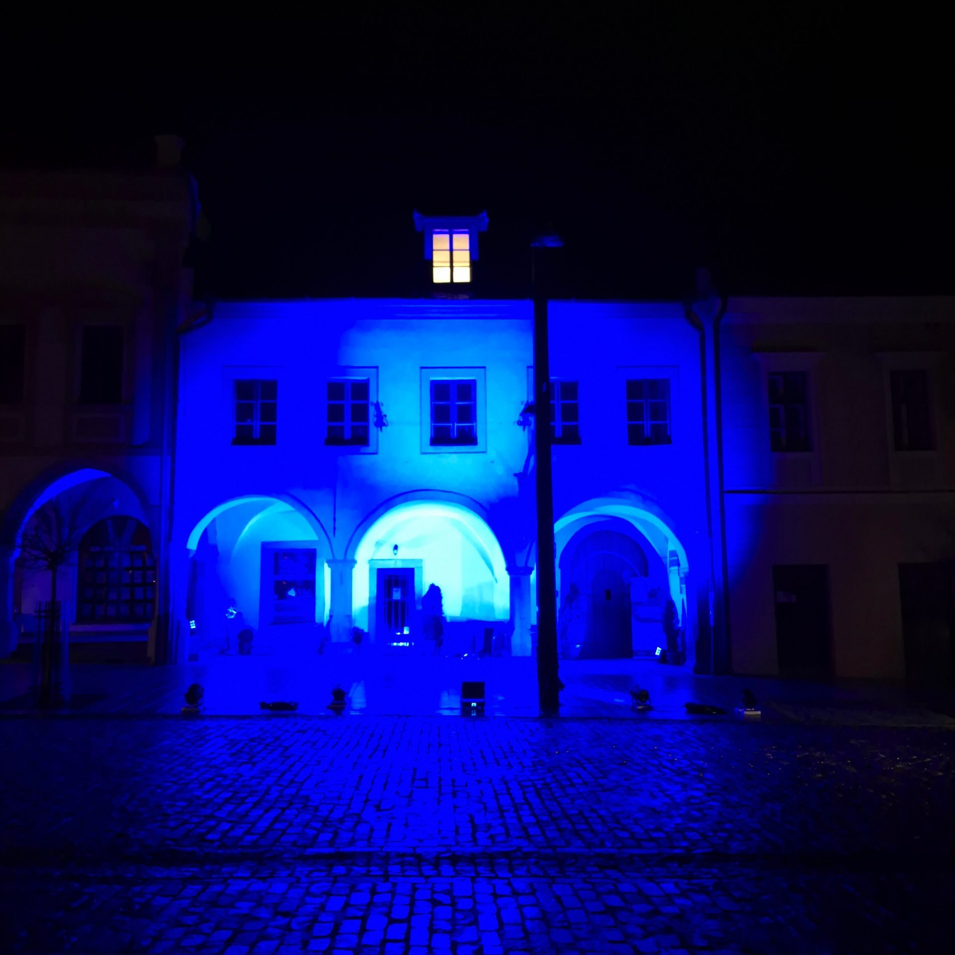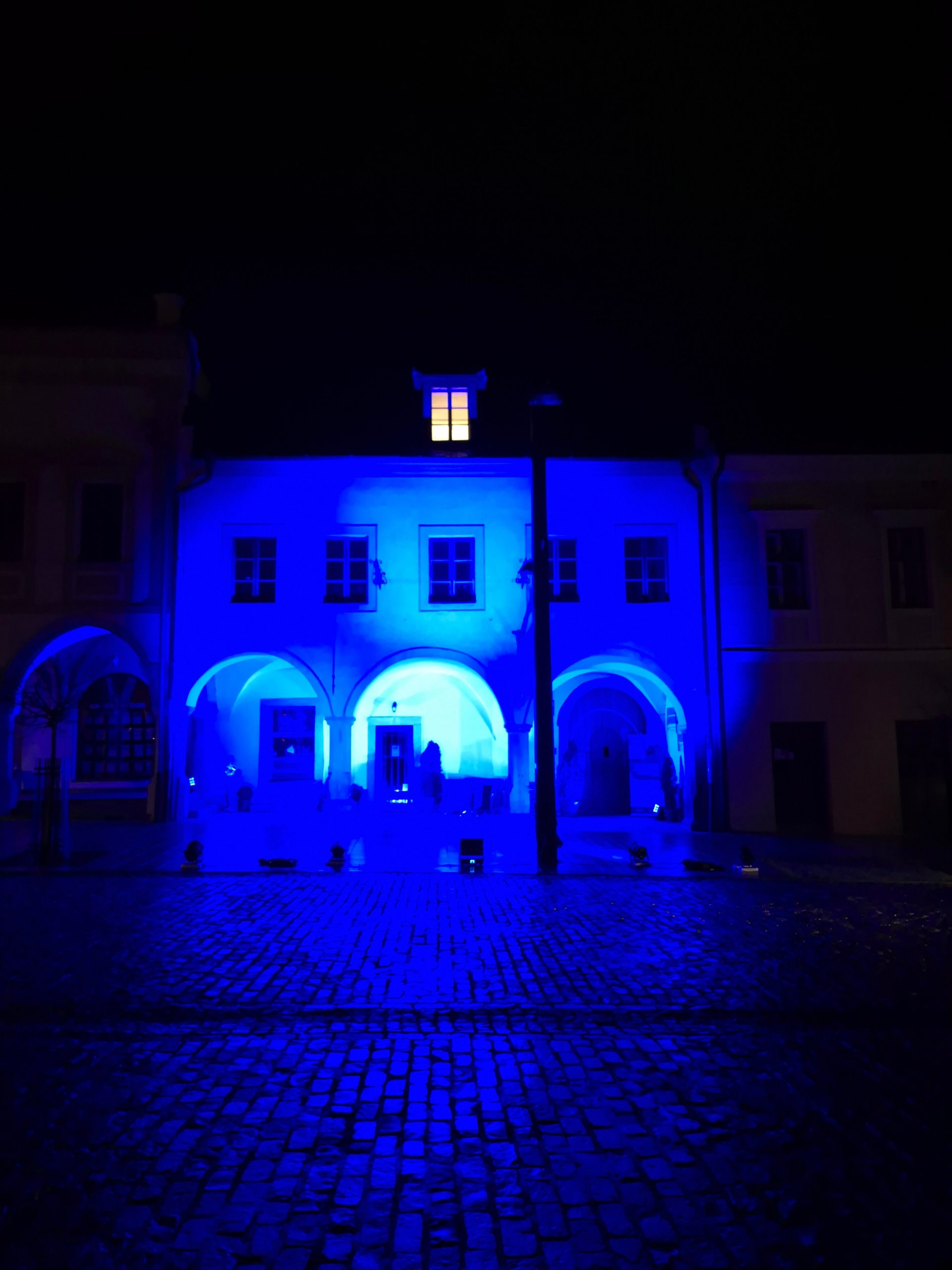 Po skončení besied nasledovalo rozsvietenie objektu múzea na modro, čím sme vyjadrili podporu osobám s autizmom.
