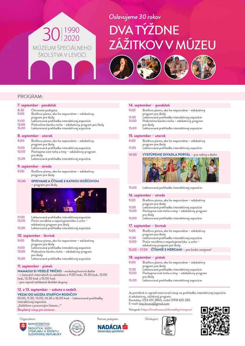 Two weeks of experience in the unique Museum of Special Education in Levoča were sponsored by the Slovenská sporiteľňa Foundation. “It starts with an educational and experiential program on September 7. The educational program is called Braille, how we don’t know it, and we continue with other activities. Come to celebrate 30 years of the Museum of Special Education in Levoča. Don’t forget to book an entrance to the interactive exhibition tour. Join the educational-experiential programs, performances by Katka Koščová, the Portal Theater or Reading with Actors,” Petreková summarizes and invites.