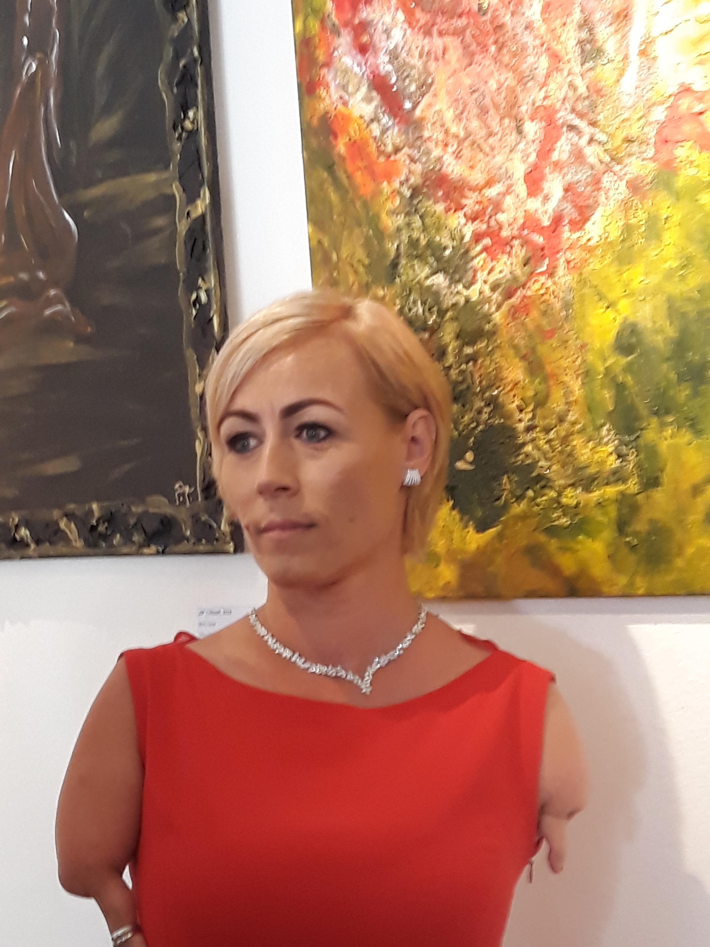Pavlína Csápaiová – Triščová, a native of Jarovník near Prešov. She lives and works in Bratislava. She fanned her flames of love for painting only during her studies in Denmark; when she was 25. Since then, painting has been the best relaxation and psycho-hygiene of its kind for her. In addition to the painting, she devotes her time to photo modeling, swimming, skiing, and hiking. She actively communicates in English and Spanish, passively in Polish, Russian, German, and even Danish.